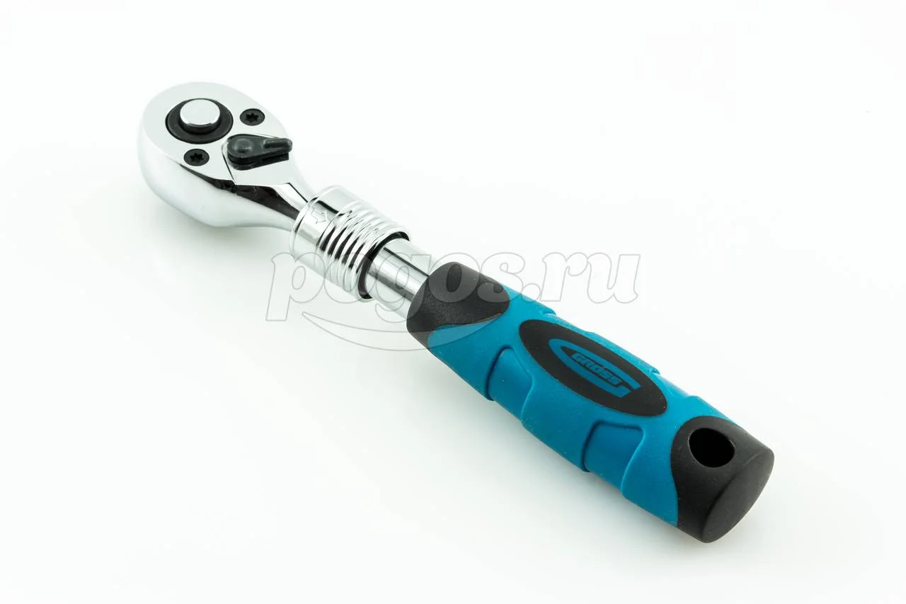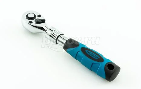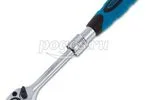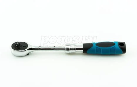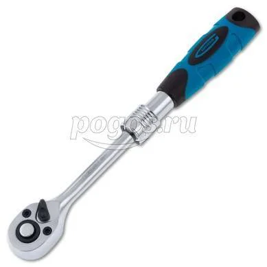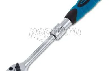 Для удобства работы ключ-трещотка оснащен запатентованным механизмом ступенчатой фиксации телескопической рукоятки.