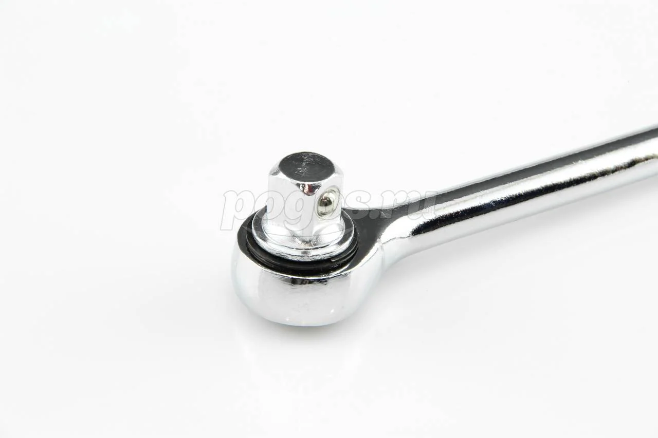 Ключ-трещотка изготовлен из хромванадиевой стали. Имеет антикоррозионное покрытие из хрома.