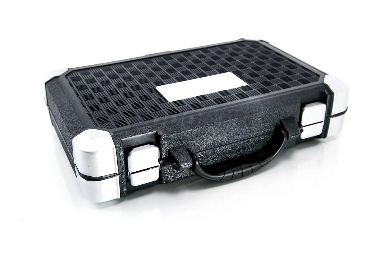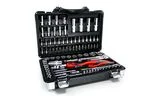 Набор включает в себя 94 предмета различных видов: торцевые головки, трещотки, ключи, биты и другие аксессуары. Инструменты изготовлены из хромванадиевой стали (Cr-V) и стали S2, что гарантирует долговечность и высокую прочность. Усиленный пластиковый кейс обеспечивает удобное хранение и транспортировку.