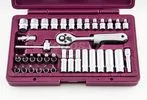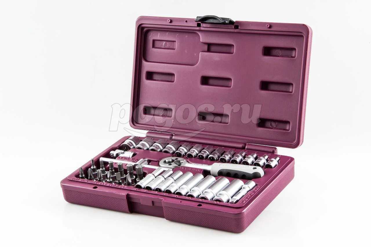 Набор инструмента THORVIK UTS0038 38 предметов 52056 включает в себя приспособления для работы с различными резьбовыми соединениями.