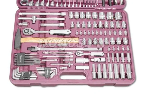 Количество в наборе, шт: 127 Присоединительный размер: 1/4 + 1/2 дюйма Тип головок: 6-гранные Количество граней: 6 Система измерения: метрическая Min размер головки, мм: 4 Max размер головки, мм: 32 Вес молотка, г: 500 Комбинированные ключи: есть Трещотка: есть Torx: есть Материал кейса: пластик Свечной ключ: нет Свечные головки: 16 мм/21 мм Размер посадки головки: 1/4; 1/2 дюйма Дюймовые головки-