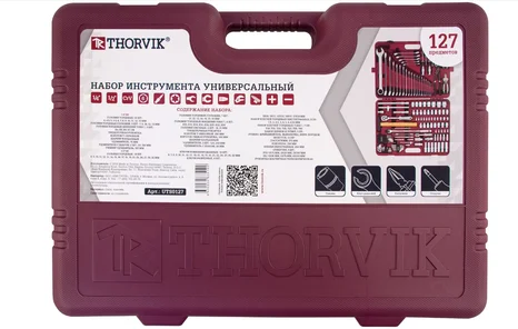 Набор инструментов универсальный THORVIK 1/4 UTS0127 состоит из большого количества оснастки и подойдет для работы с автомобилями в сервисах, а также различных манипуляций с крепежом.