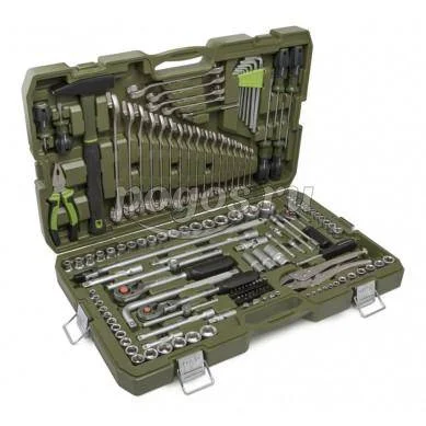 Набор головок 1/4, 3/8, 1/2 дюйма с инструментом 147 предметов Дело Техники 620847 включает в себя все необходимое для работы с крепежом различного вида. Помимо головок и бит в наборе имеются удлинители, кардан и прочий инструмент, который существенно облегчает вращения крепежных элементов. Для работы в труднодоступных местах можно использовать телескопический магнит. Инструмент в наборе рассчитан на три размера посадочных квадратов с переходниками, что позволяет взаимозаменять насадки и увеличивает количество доступных вариантов инструмента.