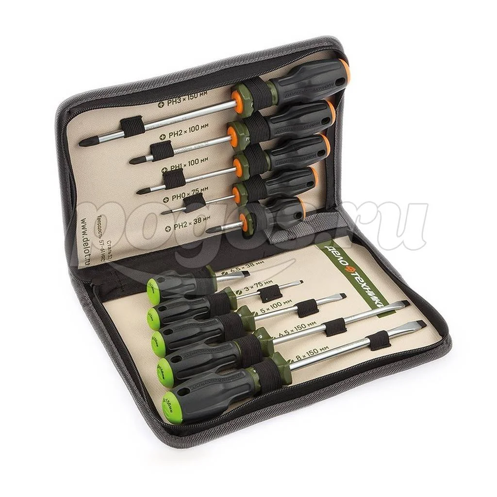 Набор отверток c 3-х компонентной ручкой 10 предметов Дело Техники 728100 предназначен для монтажа и демонтажа резьбовых соединений.