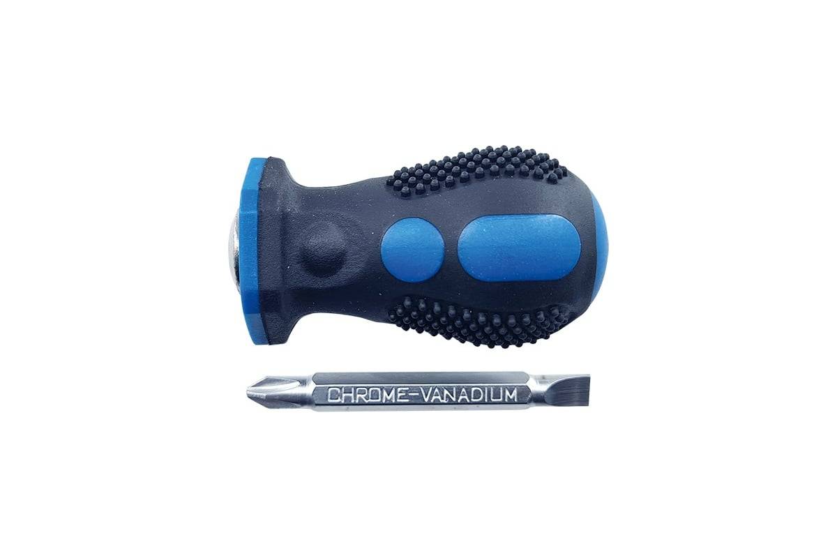 Оснащена двухсторонним стержнем с профилями PH2 и SL6 мм, изготовленным из хромованадиевой стали. Твердость рабочей поверхности стержня 55–58 HRc.