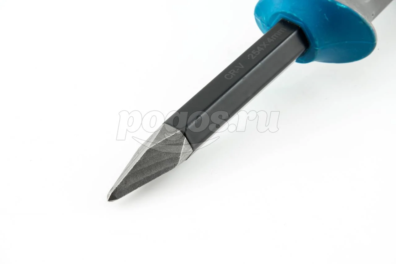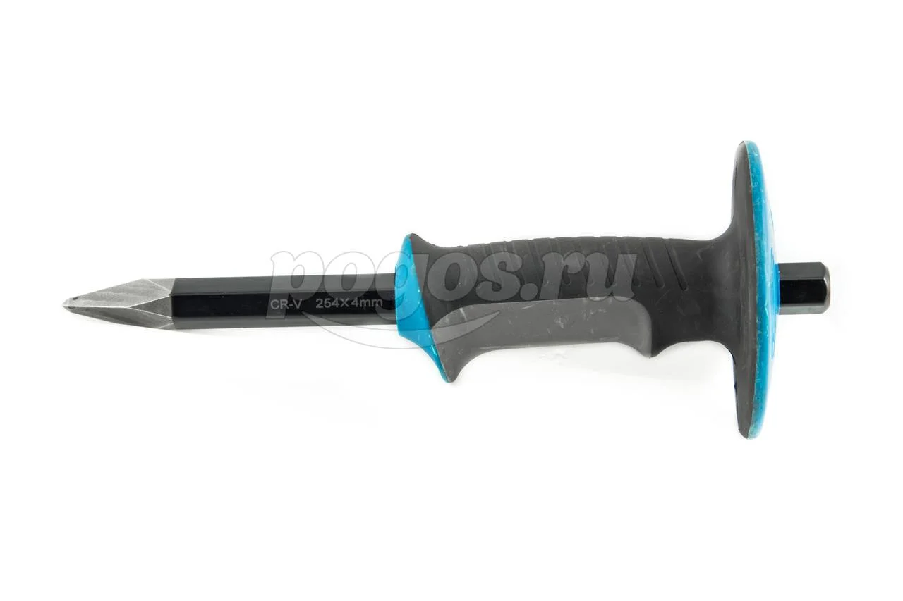 Применяются для штробления бетонных поверхностей, а также при накернивании отверстий для последующей работы с дрелью и бурами. В отличие от традиционных зубил по камню, изготавливаемых преимущественно из конструкционной и инструментальной стали, для изготовления зубил GROSS применяется сталь CrV (хромванадиевая сталь), что обеспечивает им более высокие качественные характери¬стики. Полотно инструмента GROSS покрыто защитной антикоррозийной эмалью. Для повышения стойкости и значительного увеличения рабочего ресурса инструмента режущая кромка зубил GROSS закалена и имеет твердость по Роквеллу 56-62 HRc. Для обеспечения безопасной работы и защиты рук от случайных попаданий по ним молотком тело зубила GROSS оснащено защитным протектором. Характеристики: Материал рабочей части Cr-V. Материал рукоятки пластик, резина. Длина 254 мм.