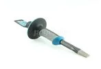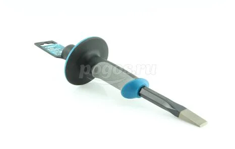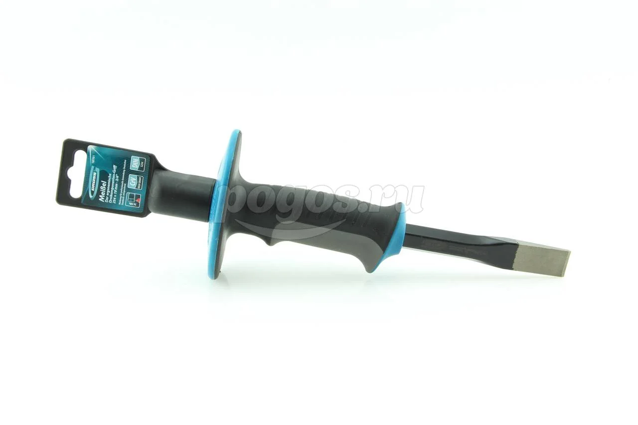 Наиболее распространенный вид зубил по камню (скарпель). Имеют широкий спектр ручного применения: раскалывание кирпича, штробление бетонных поверхностей, скульптурные работы и т. д. В отличие от традиционных зубил по камню, изготавливаемых преимущественно из конструкционной и инструментальной стали, для изготовления зубил GROSS применяется сталь CrV (хромванадиевая сталь), что обеспечивает им более высокие качественные характери¬стики. Полотно инструмента GROSS покрыто защитной антикоррозийной эмалью. Рабочая часть зубила имеет двухстороннюю заточку. Для повышения стойкости и значительного увеличения рабочего ресурса инструмента режущая кромка зубил GROSS закалена и имеет твердость по Роквеллу 56-62 HRc. Для обеспечения безопасной работы и защиты рук от случайных попаданий по ним молотком тело зубила GROSS оснащено защитным протектором. Характеристики: Материал рабочей части Cr-V. Ширина рабочей части 19 мм. Материал рукоятки пластик, резина. Длина 254 мм.