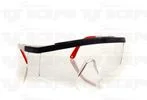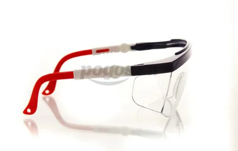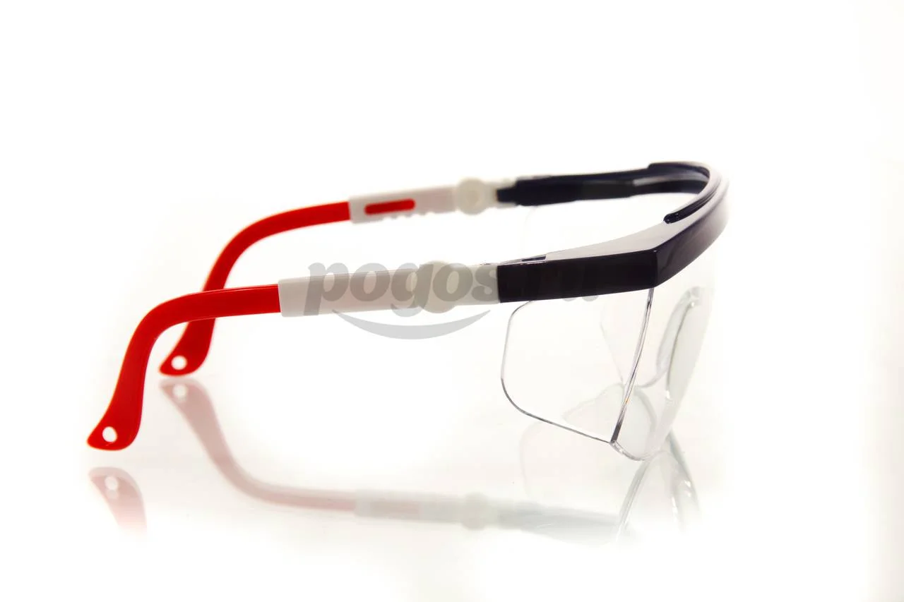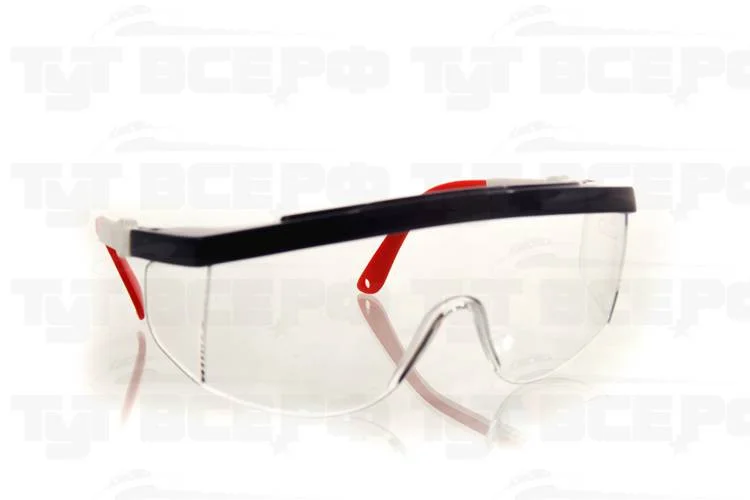 Очки имеют регулируемые по длине дужки, а также прозрачные линзы с оправой.