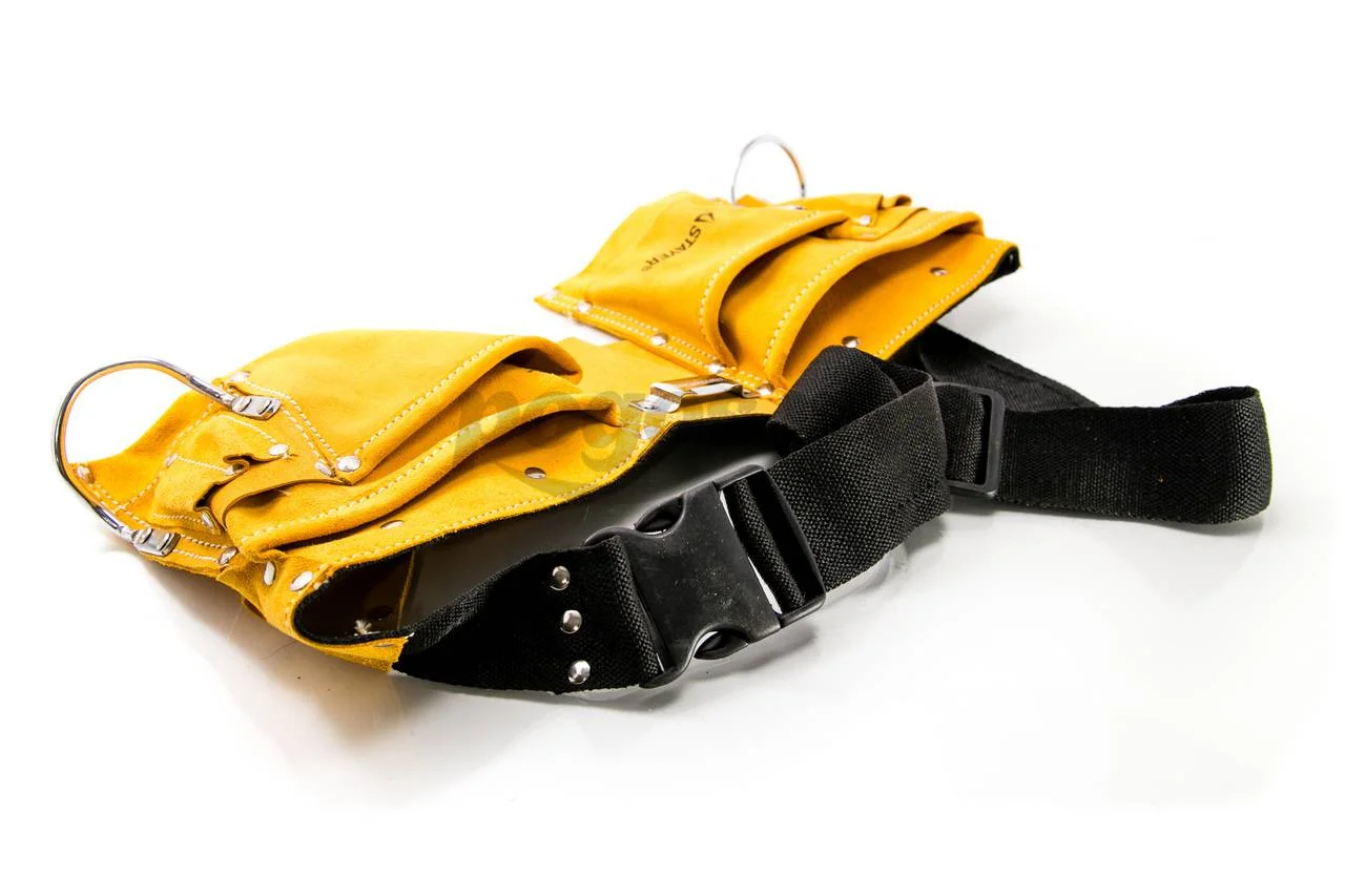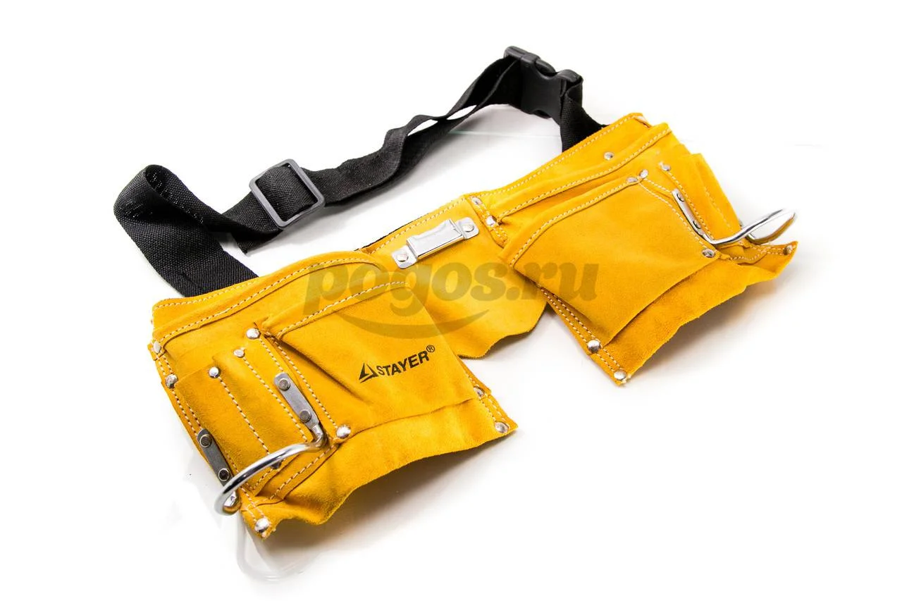 Кожаный пояс для инструментов STAYER MASTER, 10 карманов, 2 скобы 38510 - приспособление для хранения во время работы и переноса инструмента.