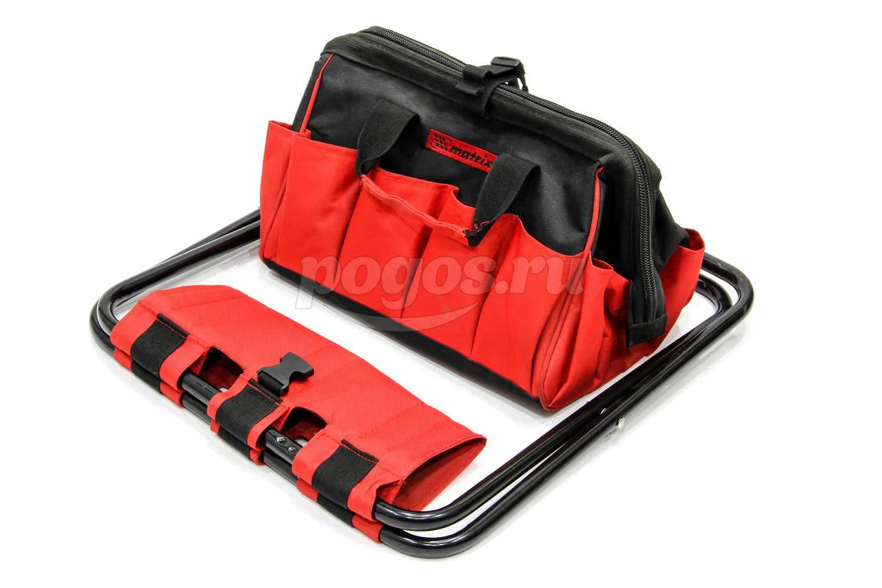 Сумка - стул складная MATRIX 90249 используется как для хранения и транспортировки инструментов, так и для работ на дачном участке, рыбалки и отдыха на природе. Стул выдержит нагрузку массой не более 90 кг. Сумка содержит карманы разной вместимости, что позволяет удобно распределить инструменты различного размера. Сумка выполнена из надежного синтетического материала, имеет длительный период эксплуатации. Сумка-стул складывается, компактна при хранении.