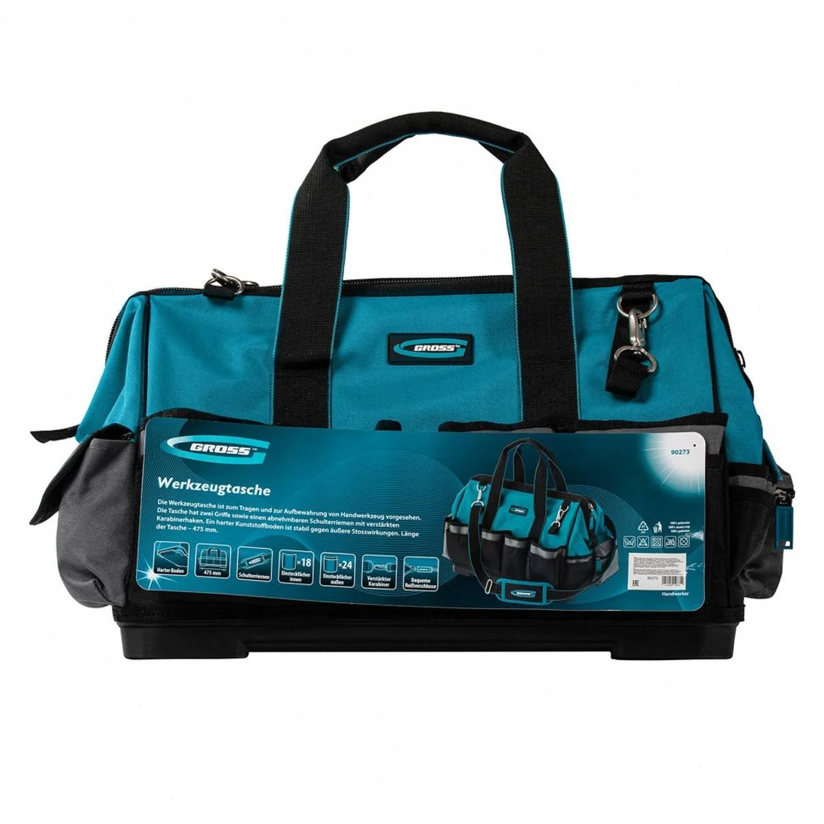Сумка для инструмента серия "Handwerker", 42 кармана, пластик, дно, наплечный ремень 475*260*360мм, GROSS 90273, артикул: 90273
