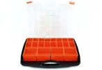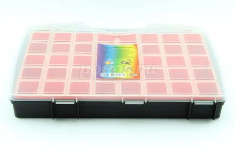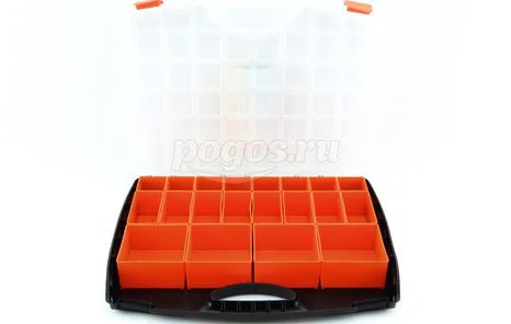 - Внутри органайзера - пластиковые контейнеры трех типов размеров.