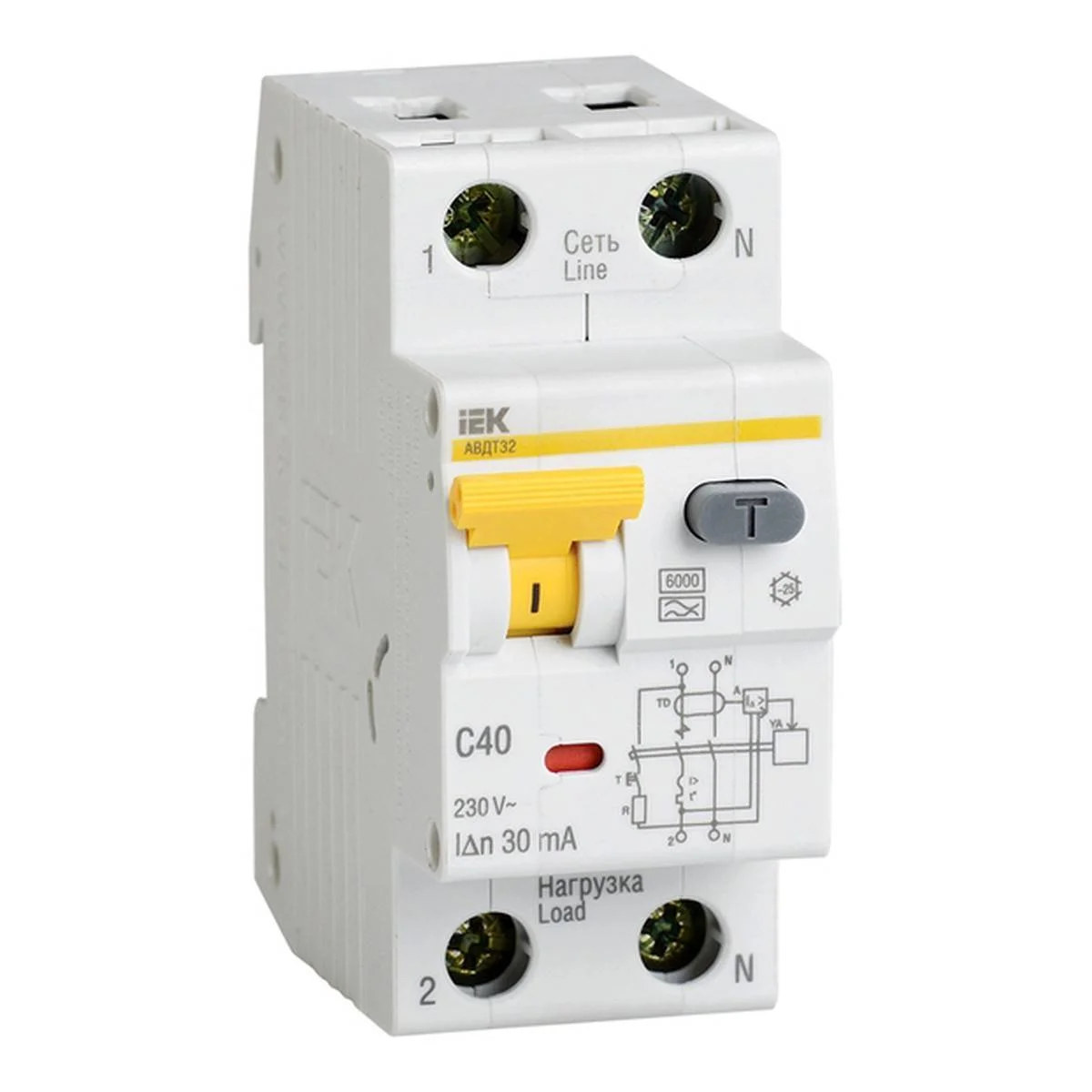 Автоматические выключатели дифференциального тока АВДТ32 предназначены для защиты человека от поражения электрическим током при повреждении изоляции электроустановок, для предотвращения пожаров вследствие протекания токов утечки на землю и для защиты от перегрузки и короткого замыкания. Рекомендуются для защиты групповых линий, питающих розетки наружной установки, розеток и освещения подвалов и гаражей. Комбинированная схема с электронным модулем дифференциальной защиты и встроенным автоматическим выключателем. Наиболее надёжная защита человека при прямом прикосновении к токоведущим частям. Независимый индикатор положения контактов. Широкий диапазон рабочих температур от -25°С до +50°С. Насечки на контактных зажимах снижают тепловые потери и увеличивают механическую устойчивость соединения. Наличие кнопки ТЕСТ для проверки работоспособности устройства и правильности подключения. Габариты АВДТ соответствуют 2-модульному исполнению за счёт размещения элементов конструкции. Помехоустойчивая схема. Быстрый монт