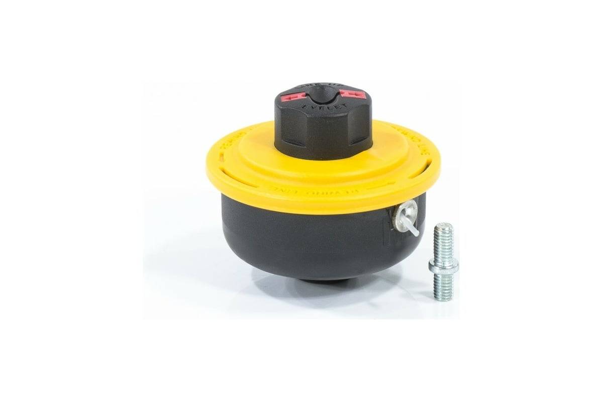 Головка для триммера. Представляет собой катушку с леской, намотанной на пластиковый корпус. Используется для срезания любых видов травы. Головка предусматривает выход лески с двух сторон. Имеет кнопку, при помощи которой осуществляется регулировка рабочей длины лески. Это может производиться автоматически в процессе работы путем нажатия кнопки о землю или вручную при выключенном двигателе. Для этого необходимо, нажать на кнопку и вытащить леску на нужную длину.