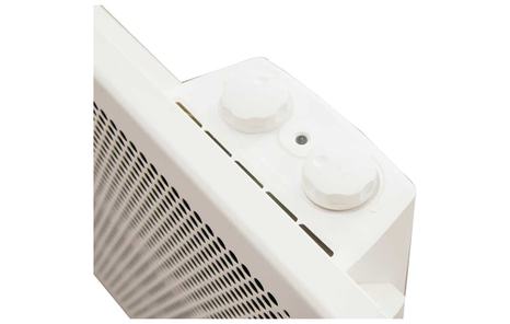 Обогреватель оборудован простым и надежным механическим термостатом, с возможностью регулировки температуры и установки полной либо «половинчатой» мощности (1000 Вт\500 Вт). Наличие перфорации для увеличения коэффициета теплоотдачи. В комплектацию прибора входит съемный настенный кронштейн для удобства монтажа, есть возможность установки на ножки с колесами (приобретаются отдельно).