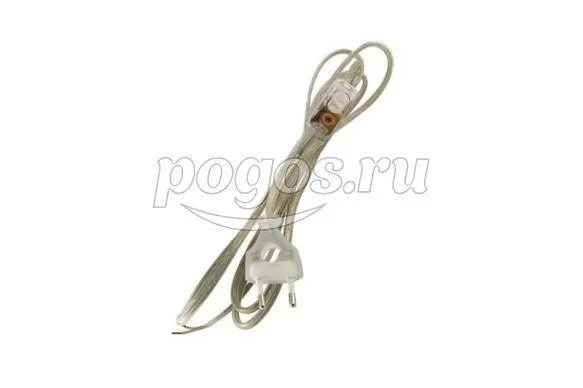 Шнур с выключателем и плоской вилкой с вырезом ШУ03В ШВВП 2х0,75мм2 2 м. прозрачный TDM