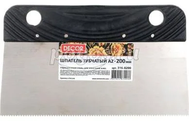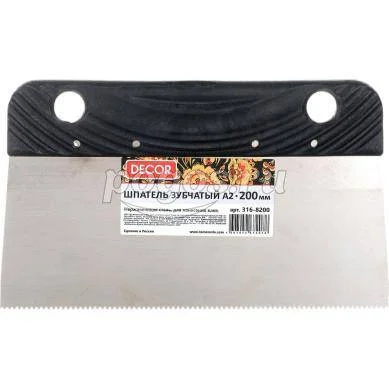 Шпатель зубчатый А2 пластиковая ручка для нанесения клея 200 мм, артикул: 316-8200