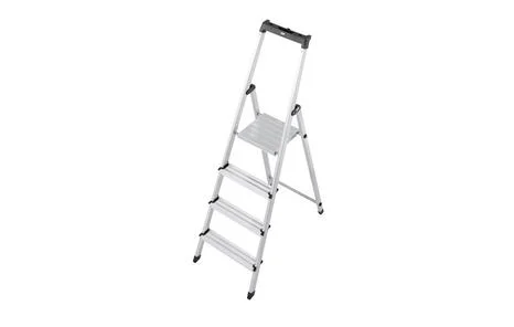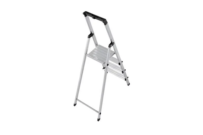 Стремянка имеет опорные пробки на нижних частях боковых профилей, которые изготовлены из пластика и каучука, предупреждая скольжение конструкции по поверхности, ее расшатывание и повреждение покрытий на полу. В верхние отверстия боковин вмонтирован небольшой, функциональный лоток с отверстиями для инструментов. Стремянка Krause Solidy имеет прочное шарнирное 4CS — крепление, которое так же укрепляет соединение боковин. Поперечины соединены с боковинами заклепочным методом — с помощью 6 функциональных заклепок на каждой стороне ступени. Сама платформа ограждена дугой безопасности, имеет рифленую, анти-скользящую поверхность.