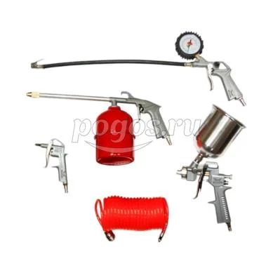 В наборе: краскопульт, шланг, подкачка, продувка, мовильный пистолет