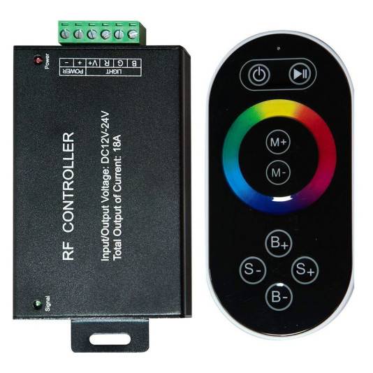 Контроллер для светодиодной ленты с П/У 18А 12-24V, черный Feron