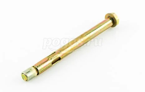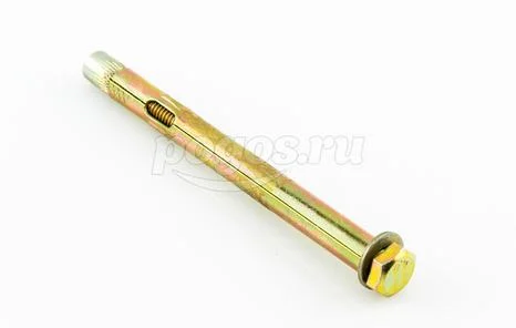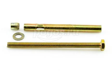Анкер состоит из болта с шестигранной головкой, цилиндрической распорной втулки и конусообразного клинового элемента.