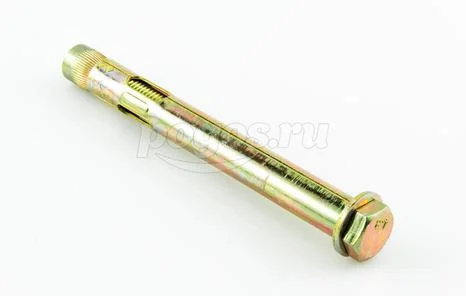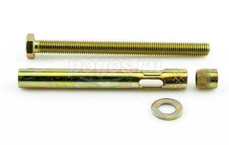 Анкер состоит из болта с шестигранной головкой, цилиндрической распорной втулки и конусообразного клинового элемента.