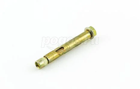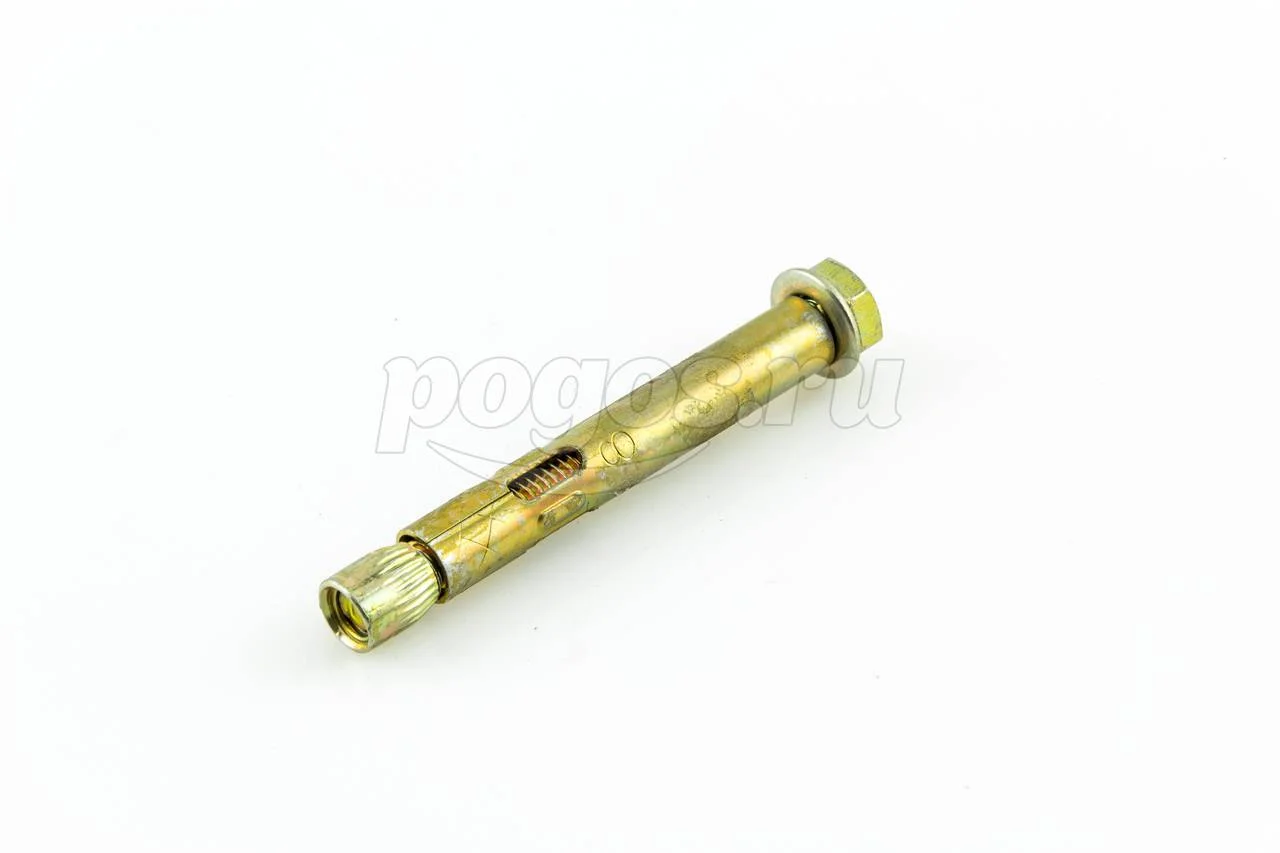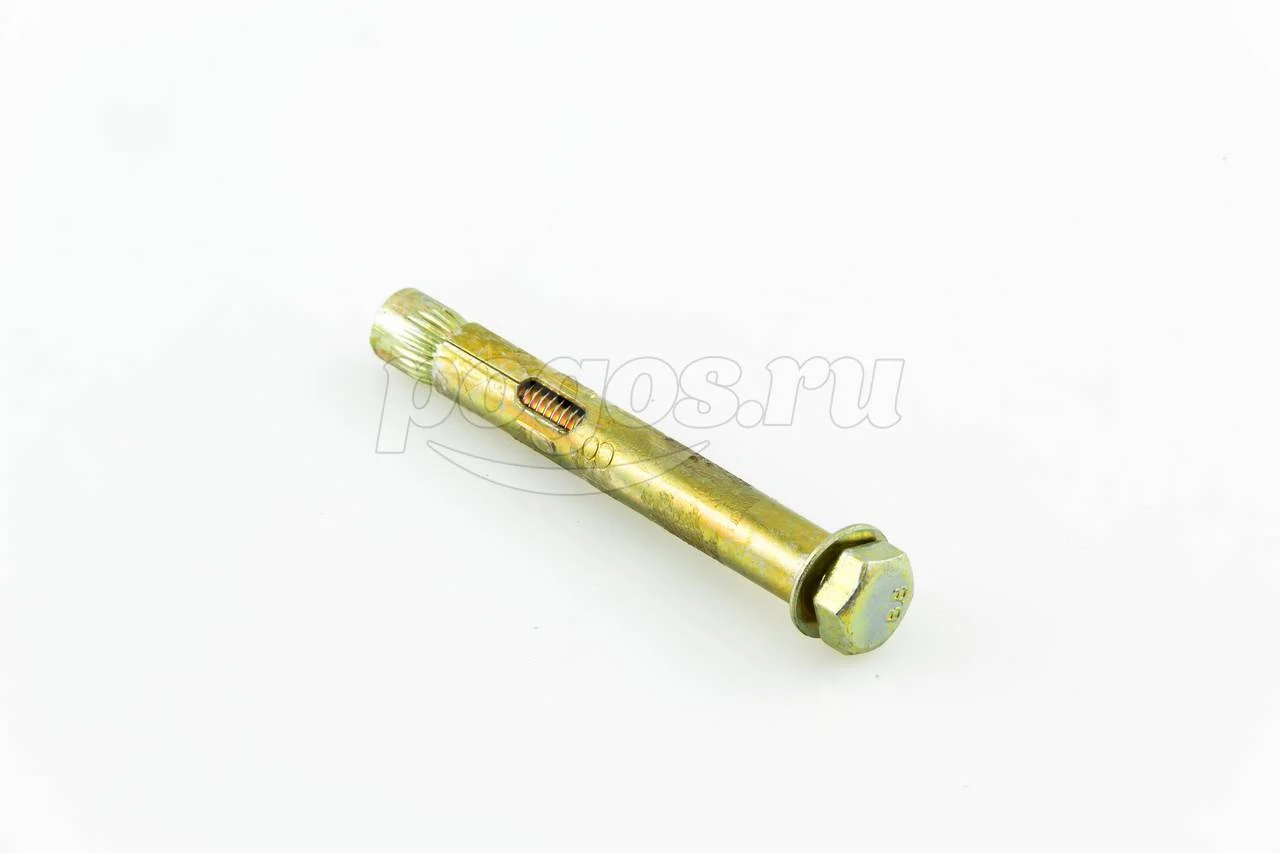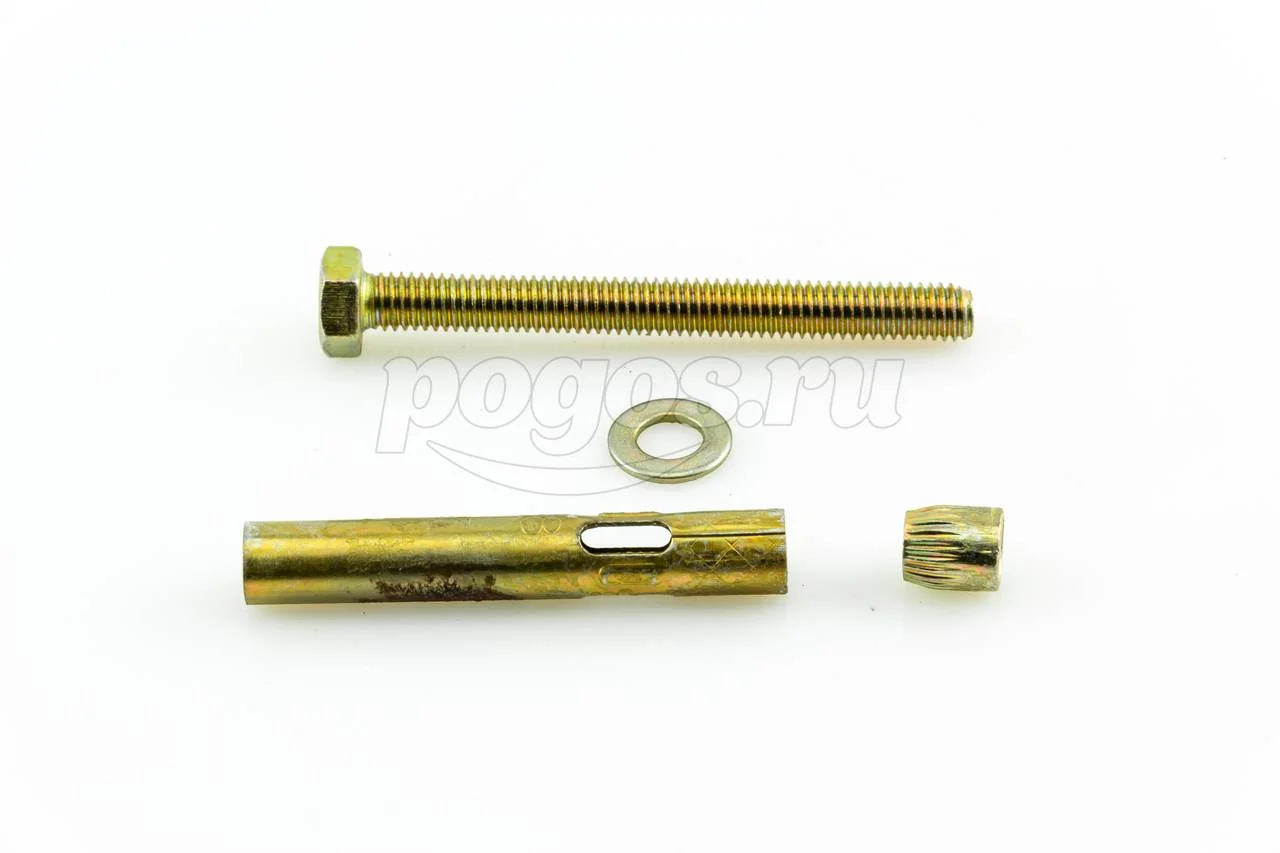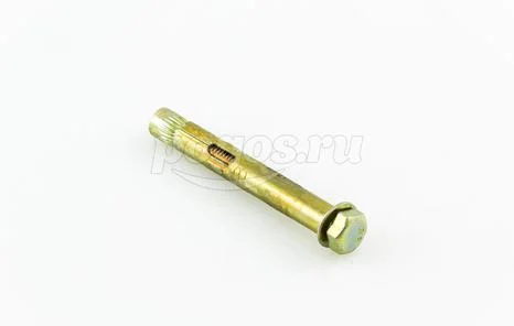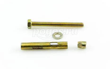 Анкер состоит из болта с шестигранной головкой, цилиндрической распорной втулки и конусообразного клинового элемента.