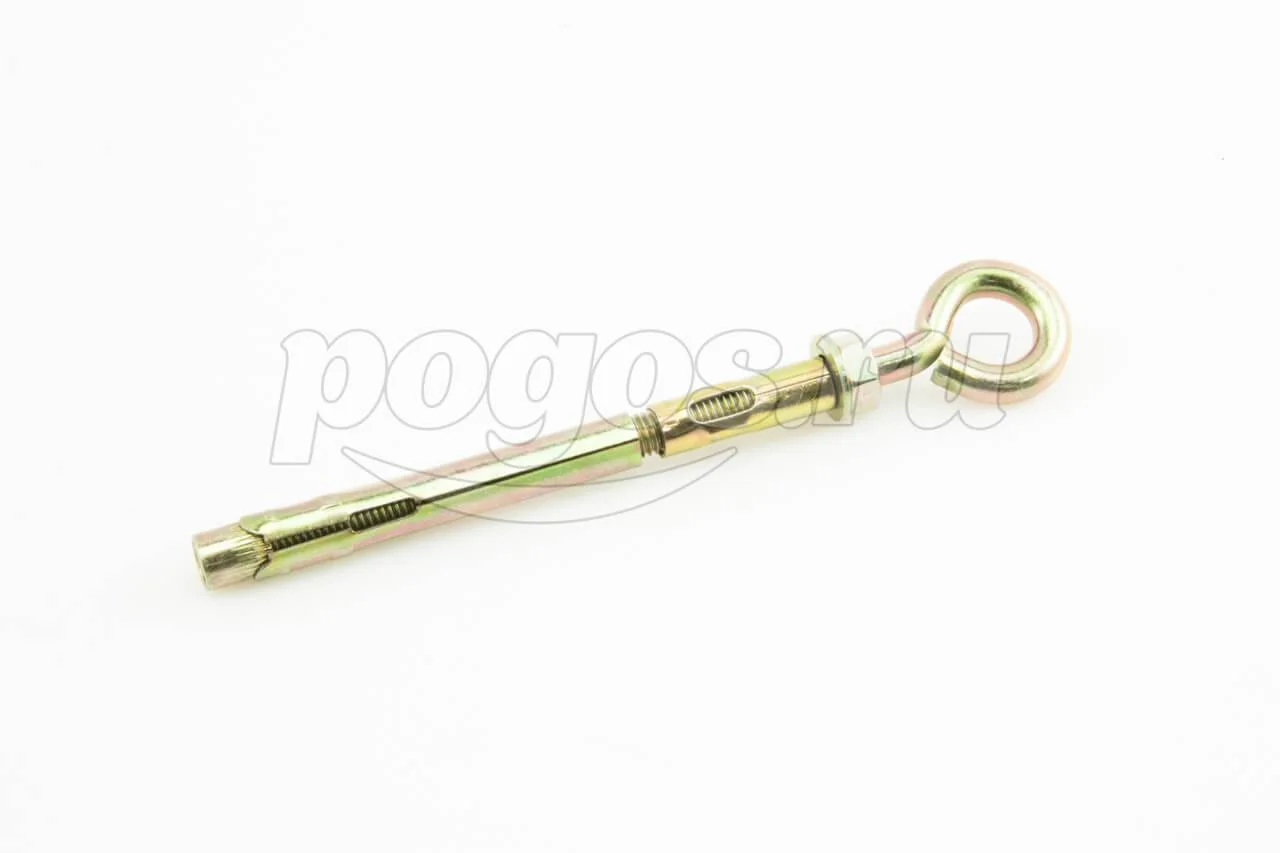 Анкерный болт с кольцом представляет собой шпильку, на одном конце которой резьба, а на другом - незаваренное кольцо. Для изготовления анкерного болта с кольцом используется желтопассивированная сталь.