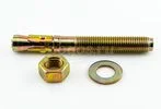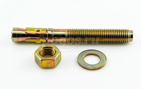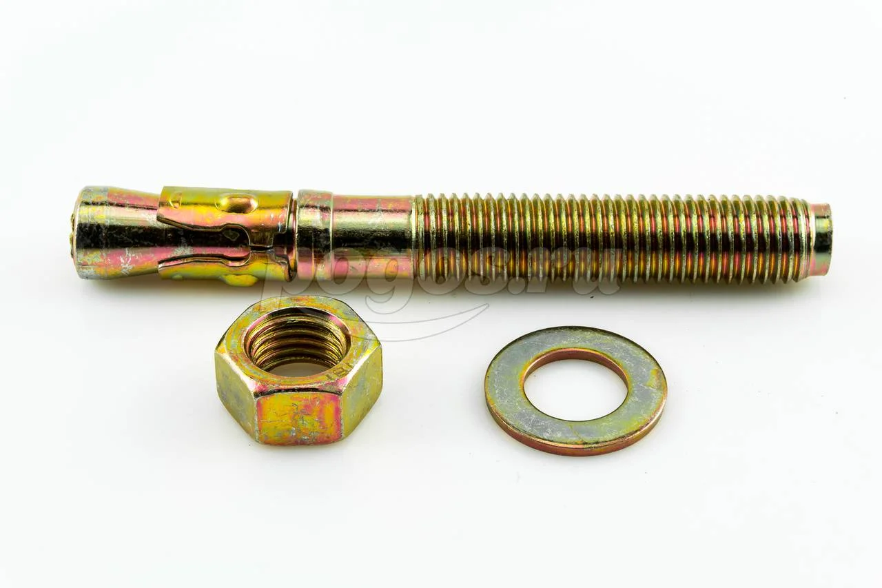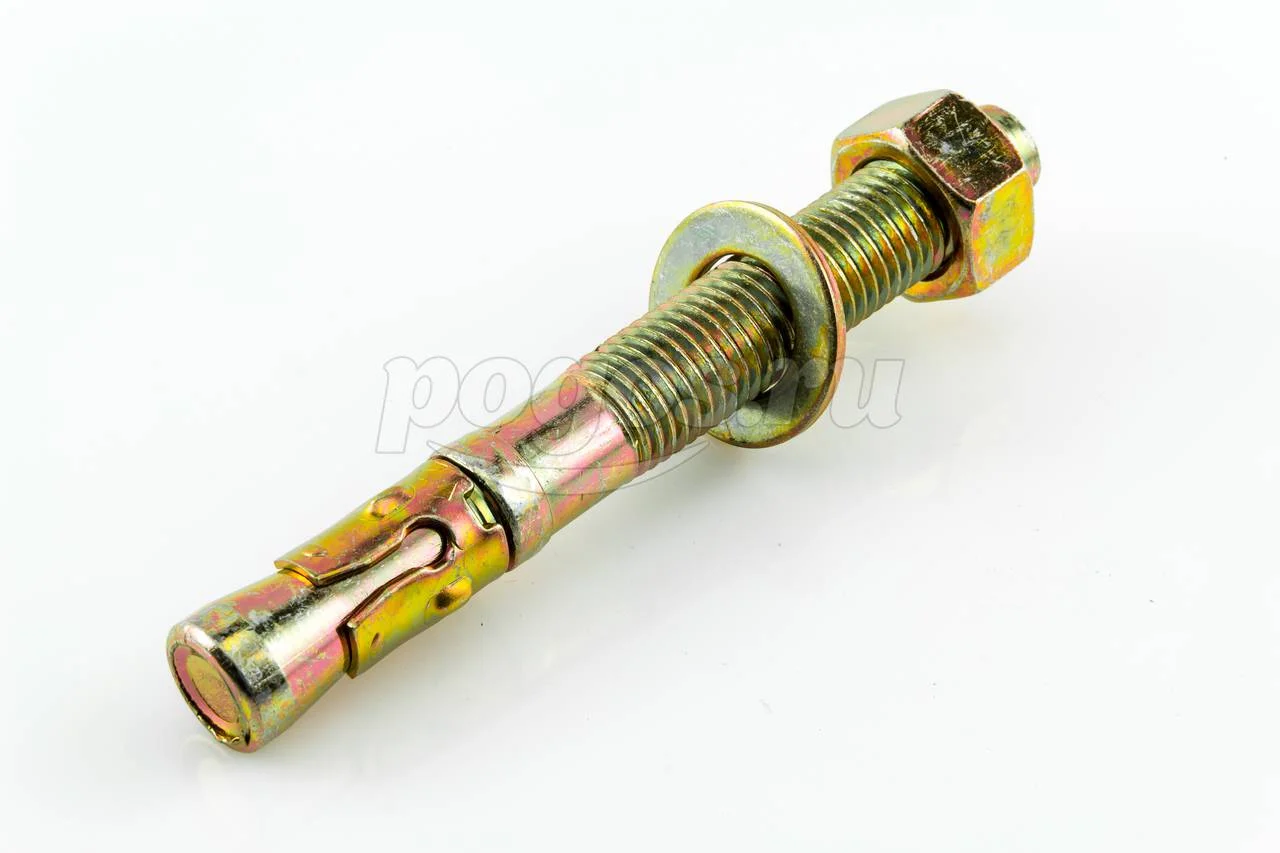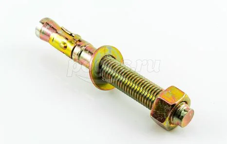 Состоит из шпильки, имеющей метрическую резьбу с одной стороны, и конусообразный элемент с другой, распорной втулки, шестигранной гайки в комплекте с шайбой.