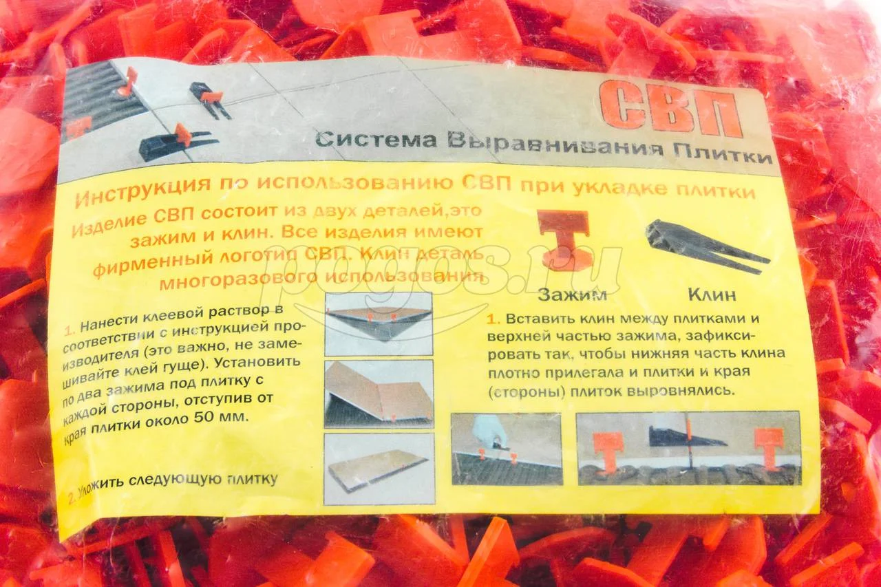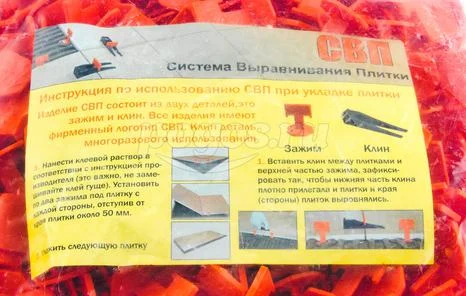 Система выравнивания плитки, зажим СВП предназначена для выравнивания поверхности по плоскости при укладке керамической плитки и керамогранита, как на пол, так и на стены.