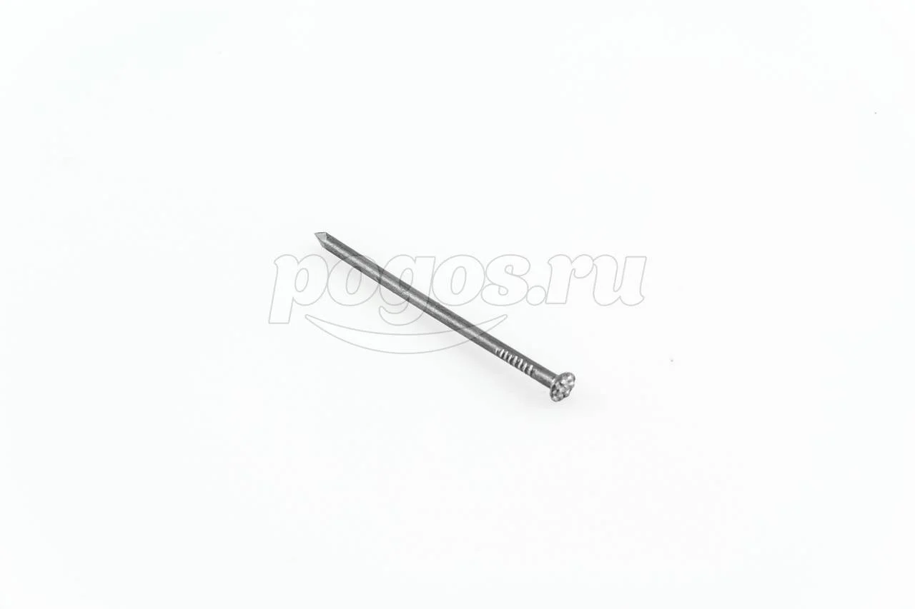 Он предназначен для тех же целей, однако имеет некоторые особенности. Так, например, на его стержне рядом с головкой нанесено специальное рифление, которое необходимо для улучшения фиксации гвоздя в материале.