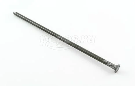 Он предназначен для тех же целей, однако имеет некоторые особенности. Так, например, на его стержне рядом с головкой нанесено специальное рифление, которое необходимо для улучшения фиксации гвоздя в материале.