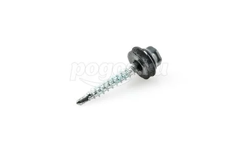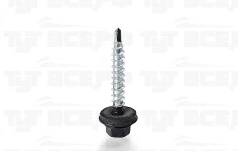 наличие резиновой прокладки, перераспределяющей давление и сохраняющей целостность материала при монтаже;окраска головки и шайбы в цвета кровли, что повышает декоративные качества;