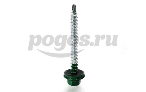 наличие резиновой прокладки, перераспределяющей давление и сохраняющей целостность материала при монтаже;окраска головки и шайбы в цвета кровли, что повышает декоративные качества;