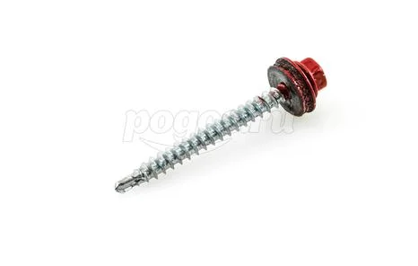 наличие резиновой прокладки, перераспределяющей давление и сохраняющей целостность материала при монтаже;окраска головки и шайбы в цвета кровли, что повышает декоративные качества;
