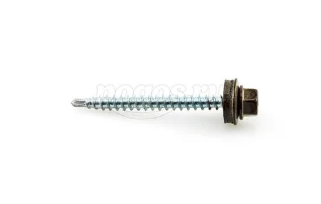 наличие резиновой прокладки, перераспределяющей давление и сохраняющей целостность материала при монтаже;окраска головки и шайбы в цвета кровли, что повышает декоративные качества;