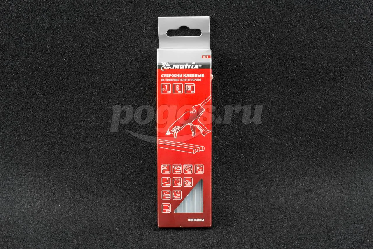 Стержни клеевые Matrix 930710 выполнены прозрачными и предназначены для установки в термоклеевой пистолет и получения качественного бесцветного термоклея. Они имеют диаметр 7 мм при длине 150 мм и могут применяться для склеивания широкого спектра материалов - метала, дерева, пластика, бумаги и кожи, картона и ткани, керамики. Склеиваемые материалы можно комбинировать между собой и надежно связывать водостойким, бесцветным клеевым слоем.
