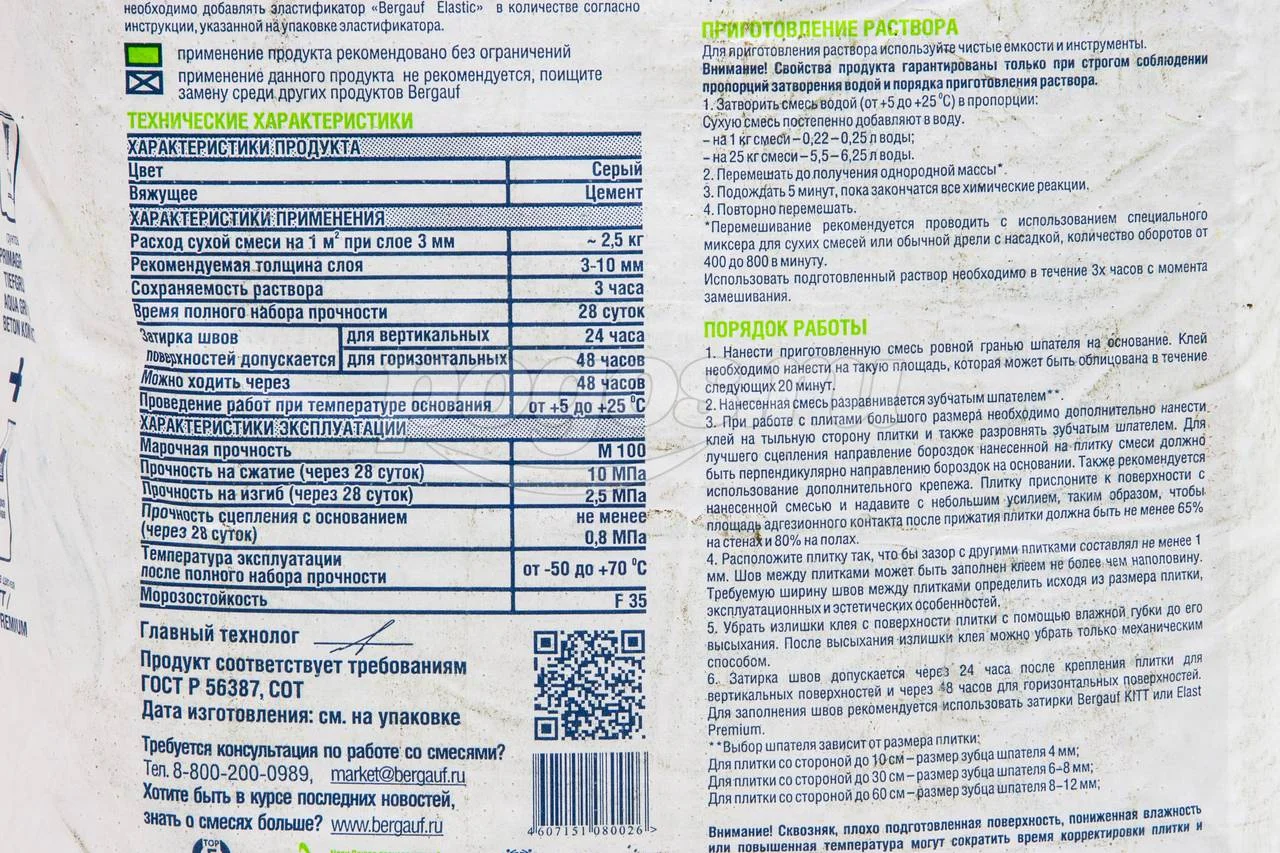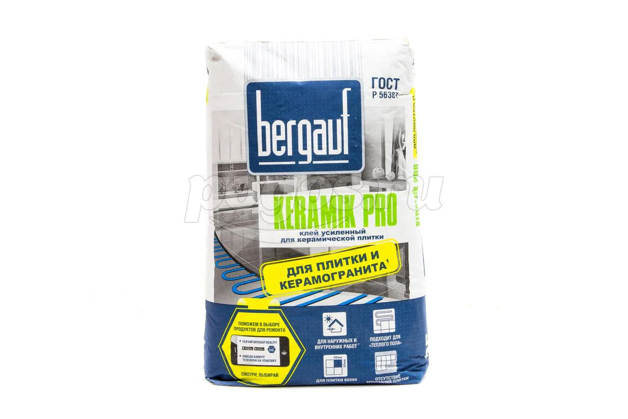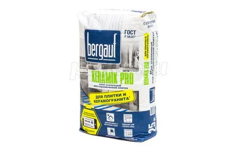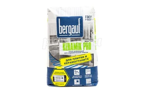 Клей влагостойкий усиленный для керамической плитки Bergauf Keramik Pro применяется пола и стен, может использоваться как клей для укладки керамогранита и природного камня на пол.