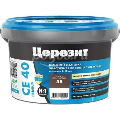 Водоотталкивающая затирка СЕ 40 противогрибковая 2кг темно-коричневый CERESIT, артикул: №58
