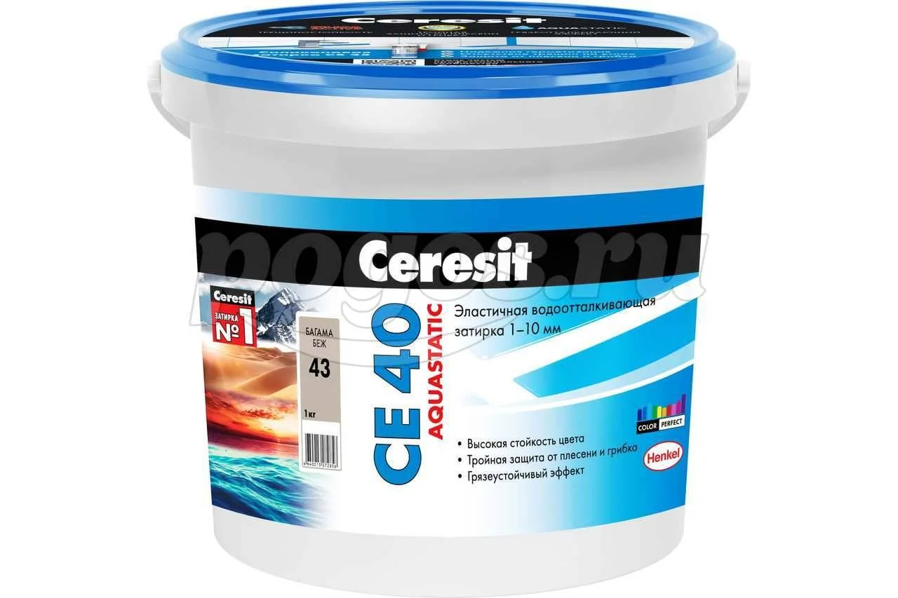 Затирка Ceresit CE 40 1 аквастатик багама 43 2780261 предназначена для заполнения швов облицовок из керамических, каменных (в том числе мраморных) и стеклянных (кроме зеркальных) плиток на полах, стенах внутри и снаружи зданий, при ширине шва до 10 мм.