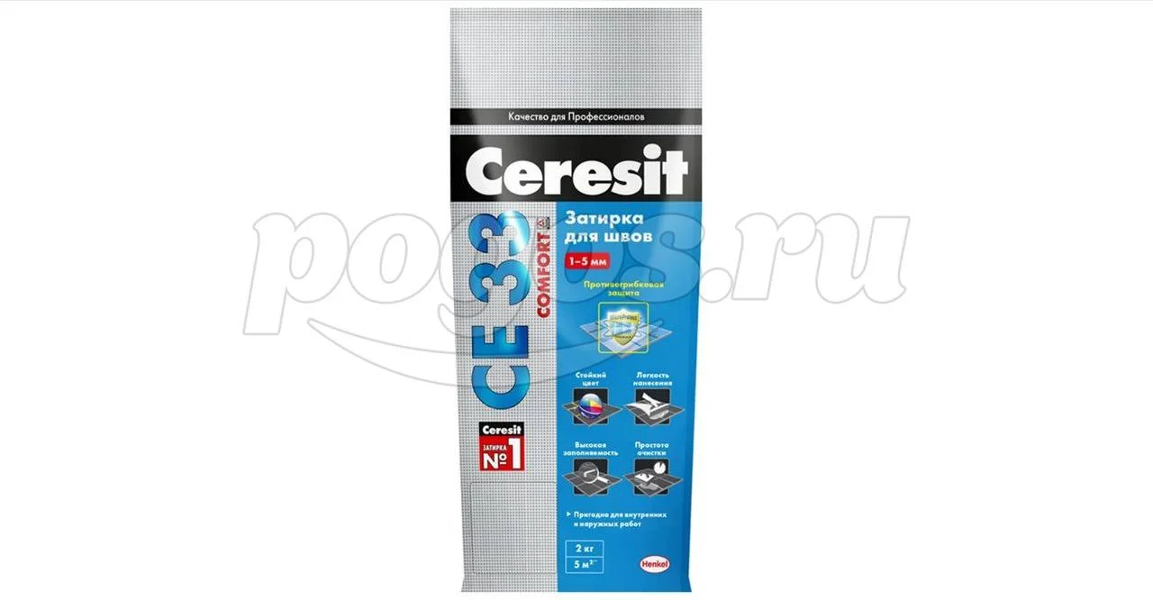 Затирка СЕ 33 влагостойкая противогрибковая 2кг антрацит CERESIT