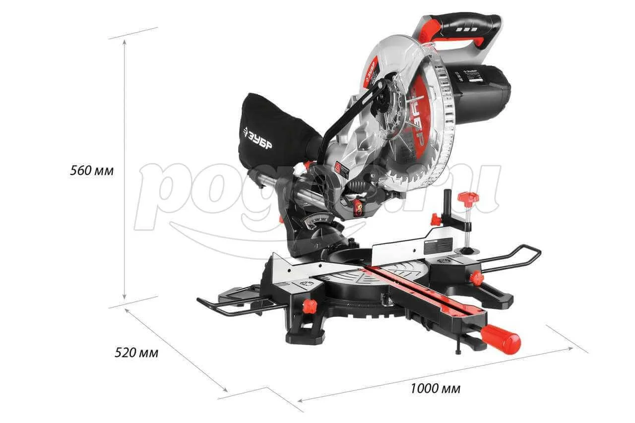 Электропила торцовочная 1,8кВт 5000об/мин 30х255мм лазер удлинители стола ременная передача ЗУБР, артикул: ЗПТ-255-1800 ПЛР