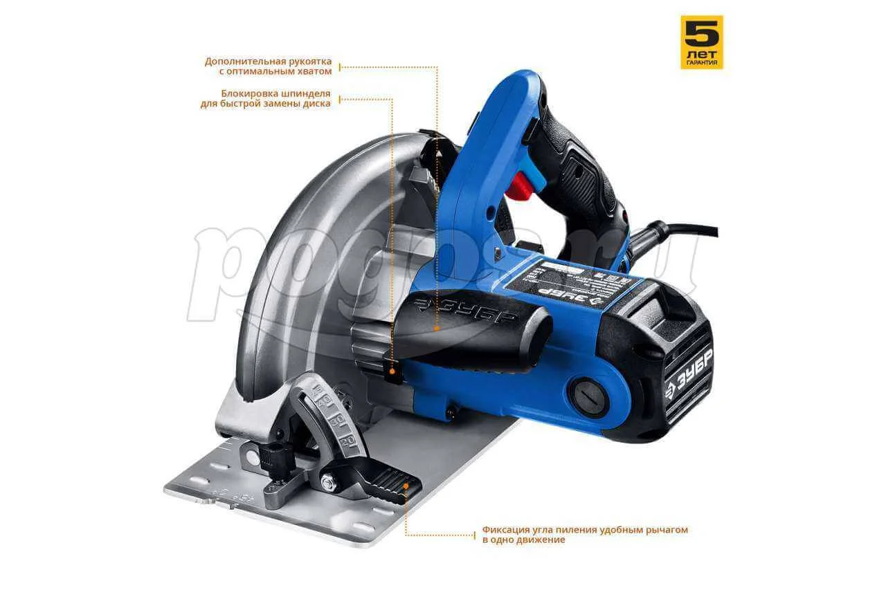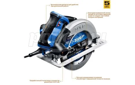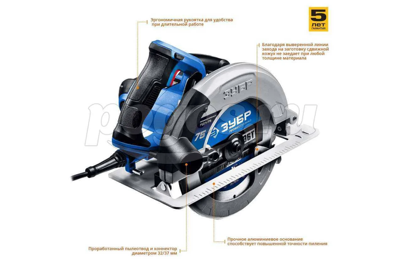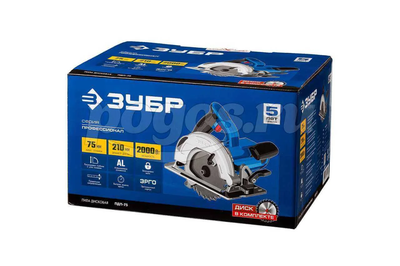 Пила циркулярная сетевая 2000Вт 5300об/мин 210мм ЗУБР, артикул: ПДП-75