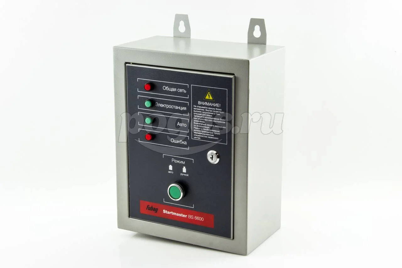 Блок автоматики Startmaster BS 6600 230V FUBAG 838220 обеспечивает автоматический запуск электростанций FUBAG BS 5500 A ES арт. 568279, BS 6600 A ES арт. 568281 в случае падения напряжения в основной сети.
