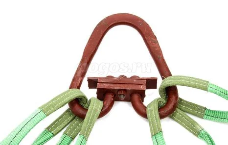 По конструкции это четыре стропа одноветвевых текстильных 1СТ, соединенных вместе с использованием подвесного звена типа РТ (РТ1, РТ3) или ОВ (ОВ-2), которое применяется для навешивания на крюк определенного грузоподъемного механизма.