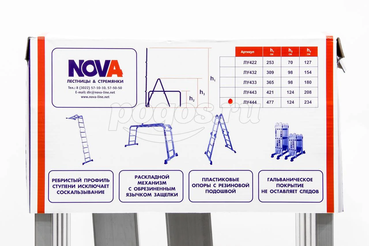 Лестница трансформер 4 секции 4 ступени NOVA, артикул: ЛУ444