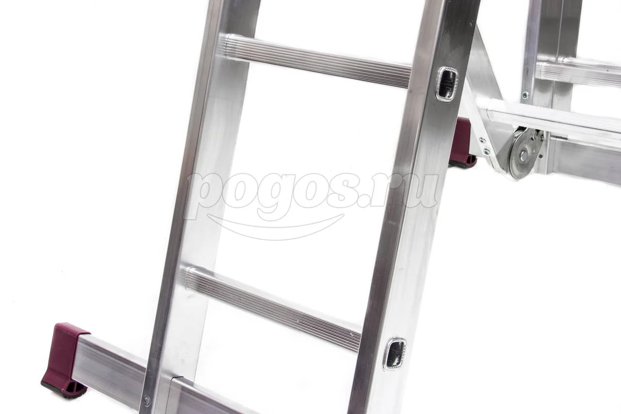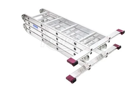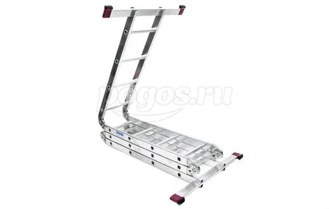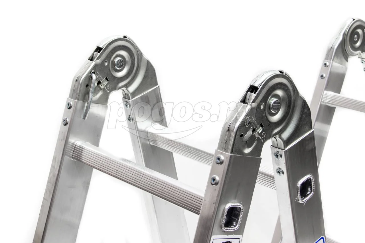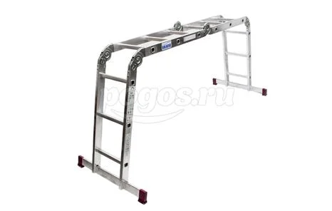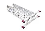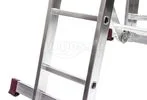 • Четырехсекционная универсальная алюминиевая шарнирная лестница: применяется как двусторонняя стремянка, как приставная лестница и как рабочая платформа.