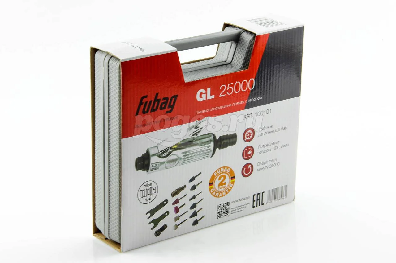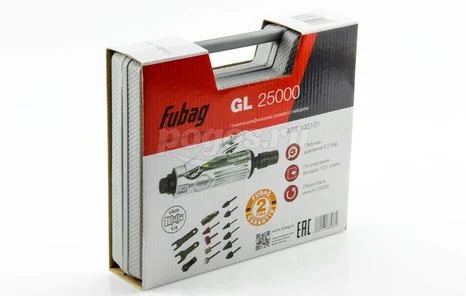 Пневмошлифмашина прямая 25000об/мин 154л/мин набор головок, кейс GL25000 FUBAG, артикул: 100101