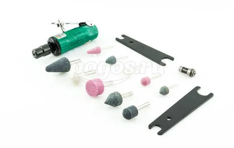 Высокоскоростная пневматическая бормашина с набором насадок и аксессуаров применяется для локальной шлифовки, зачистки фасонных и профилированных поверхностей деталей, изготовленных из металлов, камня и т.п., в зависимости от применяемой насадки.