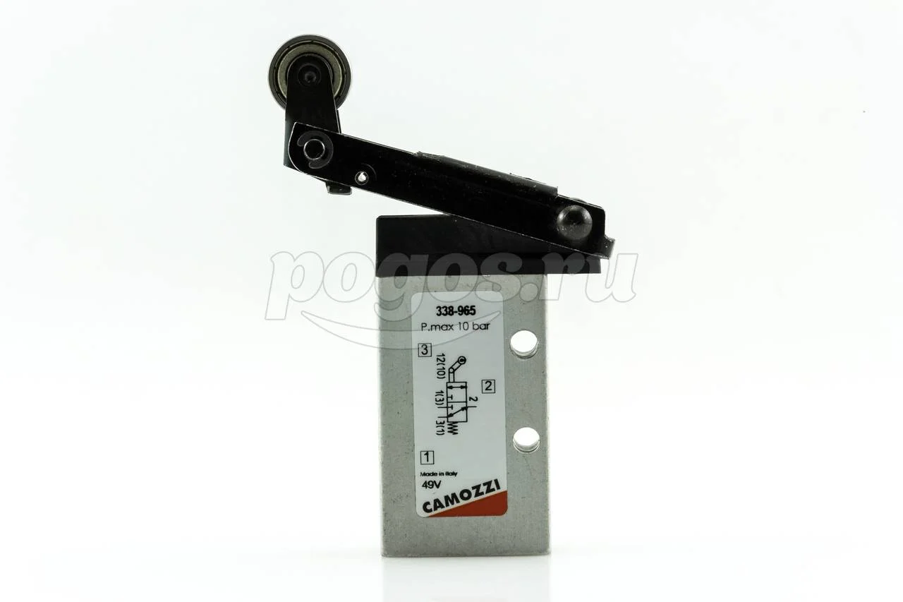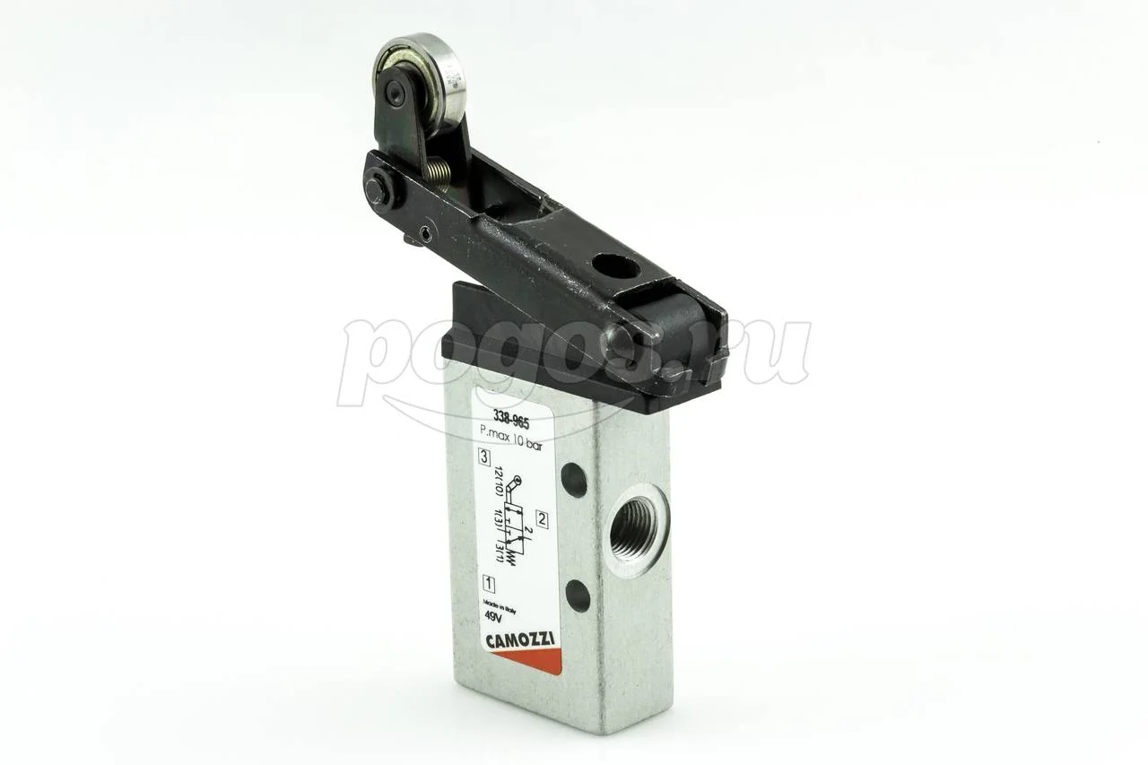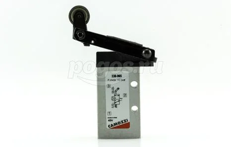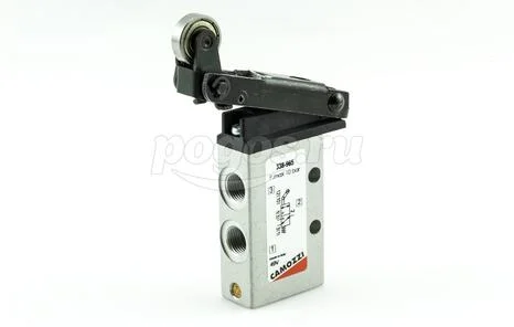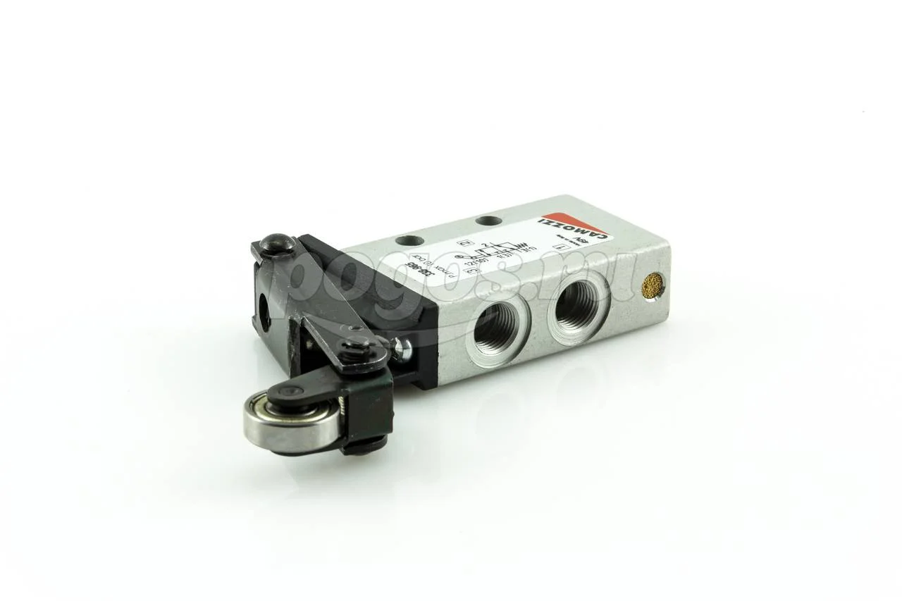 Распределитель Camozzi с механическим управлением, переключение: ролик с ломающимся рычагом, 3/2 моностабильный с пружинным возвратом.